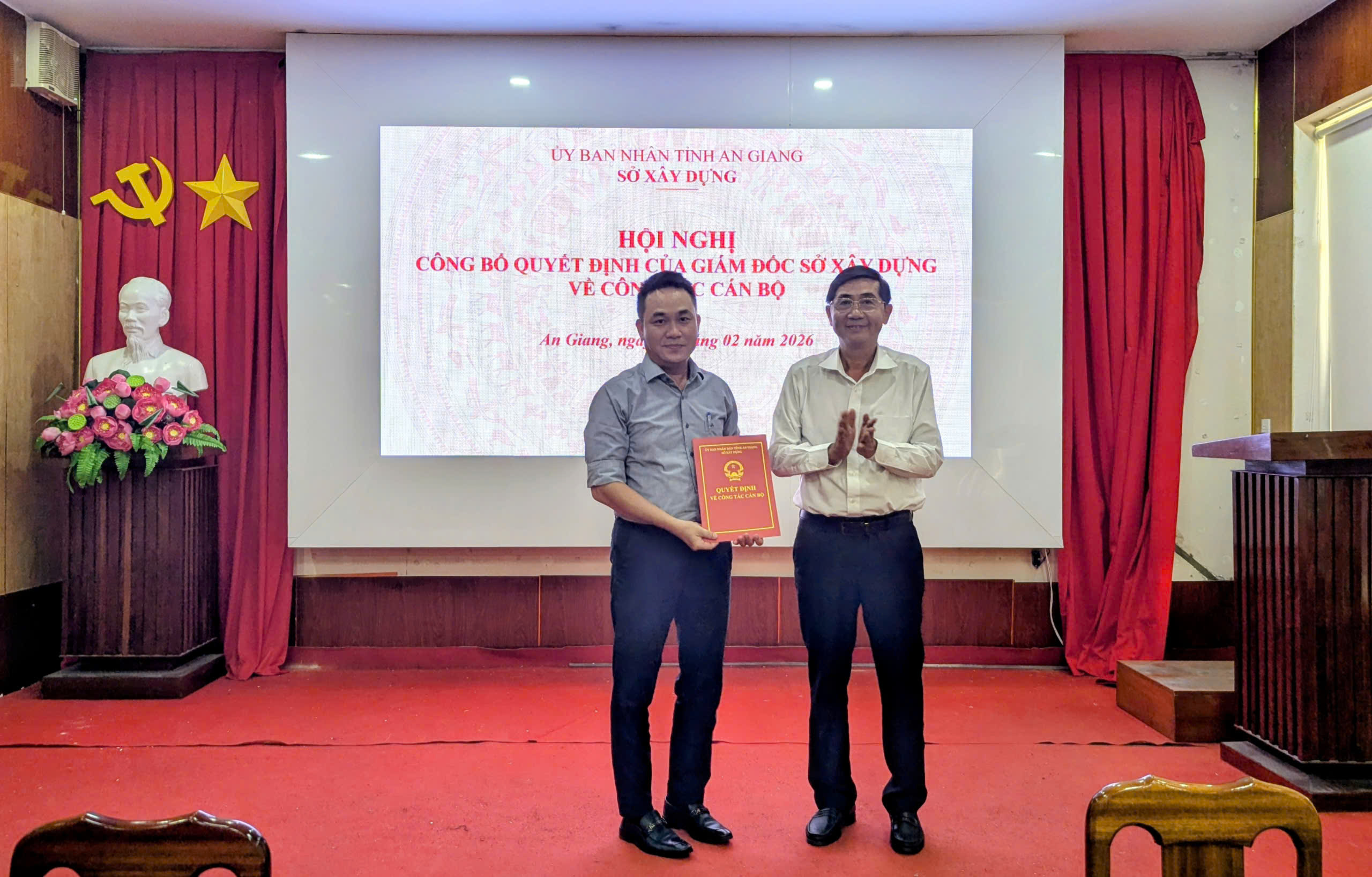 Sáng ngày 12/02/2026, Sở Xây dựng tỉnh An Giang tổ chức Hội nghị công bố quyết định của Giám đốc Sở Xây dựng về công tác cán bộ.