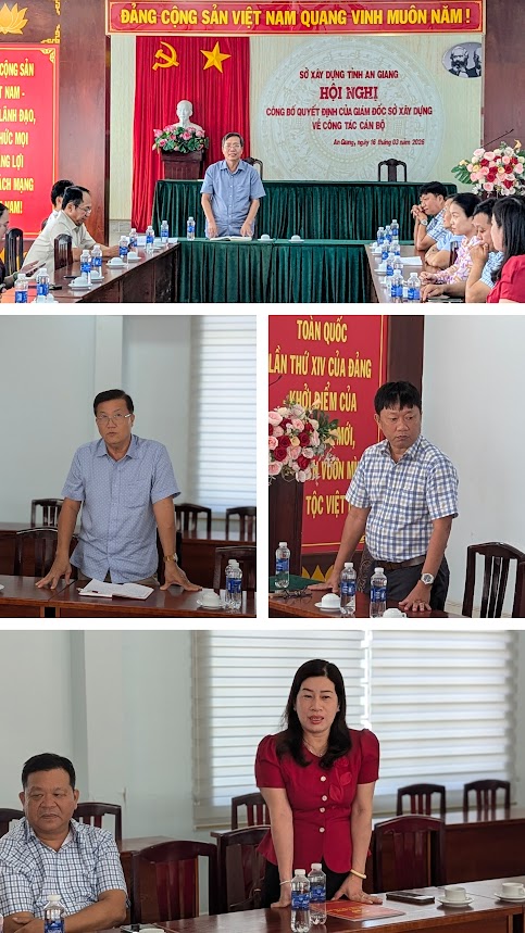 Sáng 16/3/2026, Sở Xây dựng tỉnh An Giang tổ chức Hội nghị công bố Quyết định của Giám đốc Sở về công tác cán bộ. Dự và chỉ đạo Hội nghị có ông Nguyễn Ngọc Lân – Phó Bí thư Đảng ủy Sở, Phó Giám đốc Sở Xây dựng; cùng dự có lãnh đạo Văn phòng, Trung tâm Quy hoạch xây dựng và công chức, người lao động thuộc Văn phòng Sở.