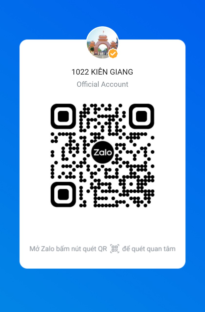 6. Đề nghị các thí sinh quan tâm, đăng ký Kênh Zalo 1022 của tỉnh Kiên Giang để kịp cập nhật các thông tin cần thiết liên quan đến việc tổ chức sát hạch cấp Chứng chỉ hành nghề hoạt động của Sở Xây dựng; dùng thiết bị thông minh để quét mã bên dưới đây: