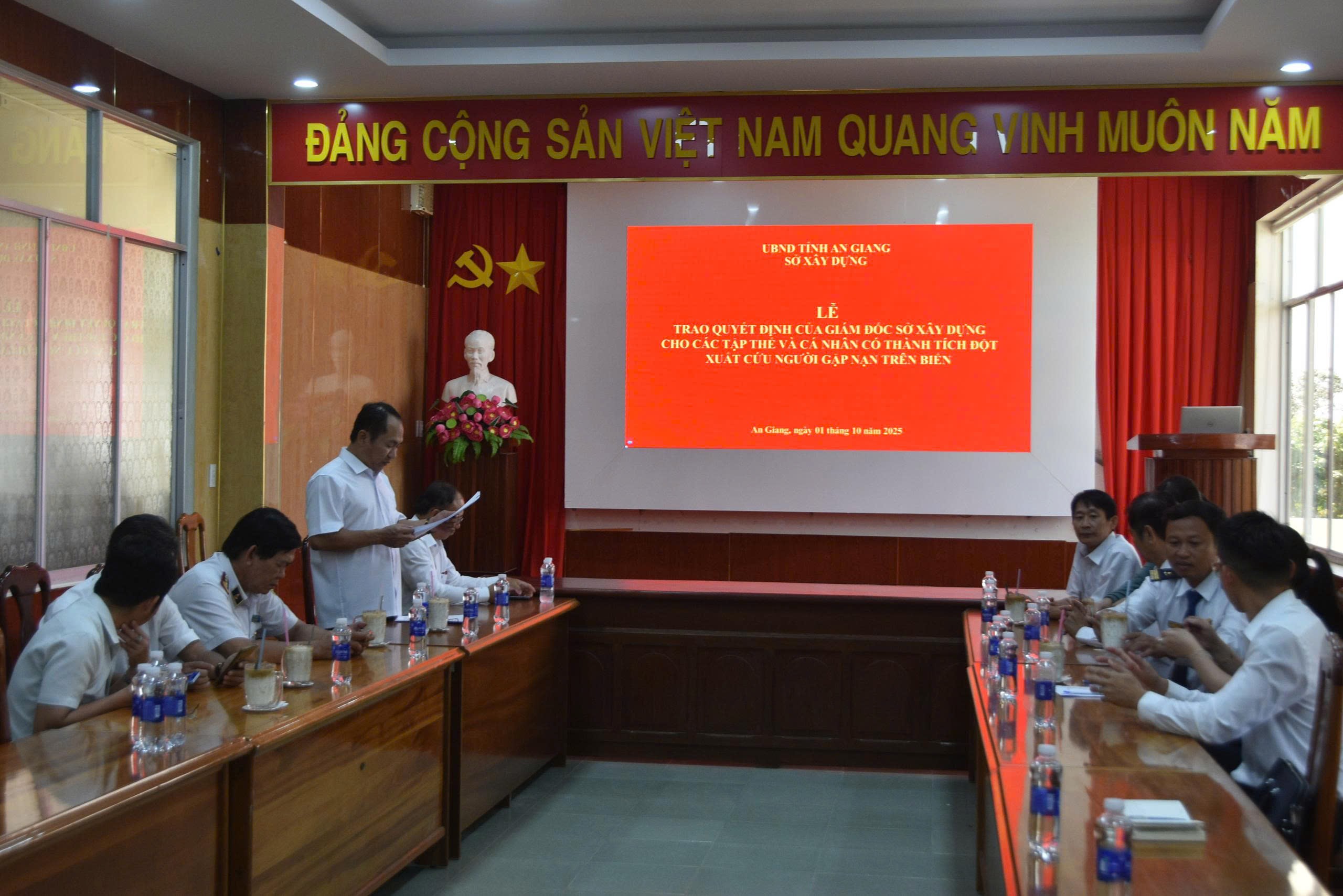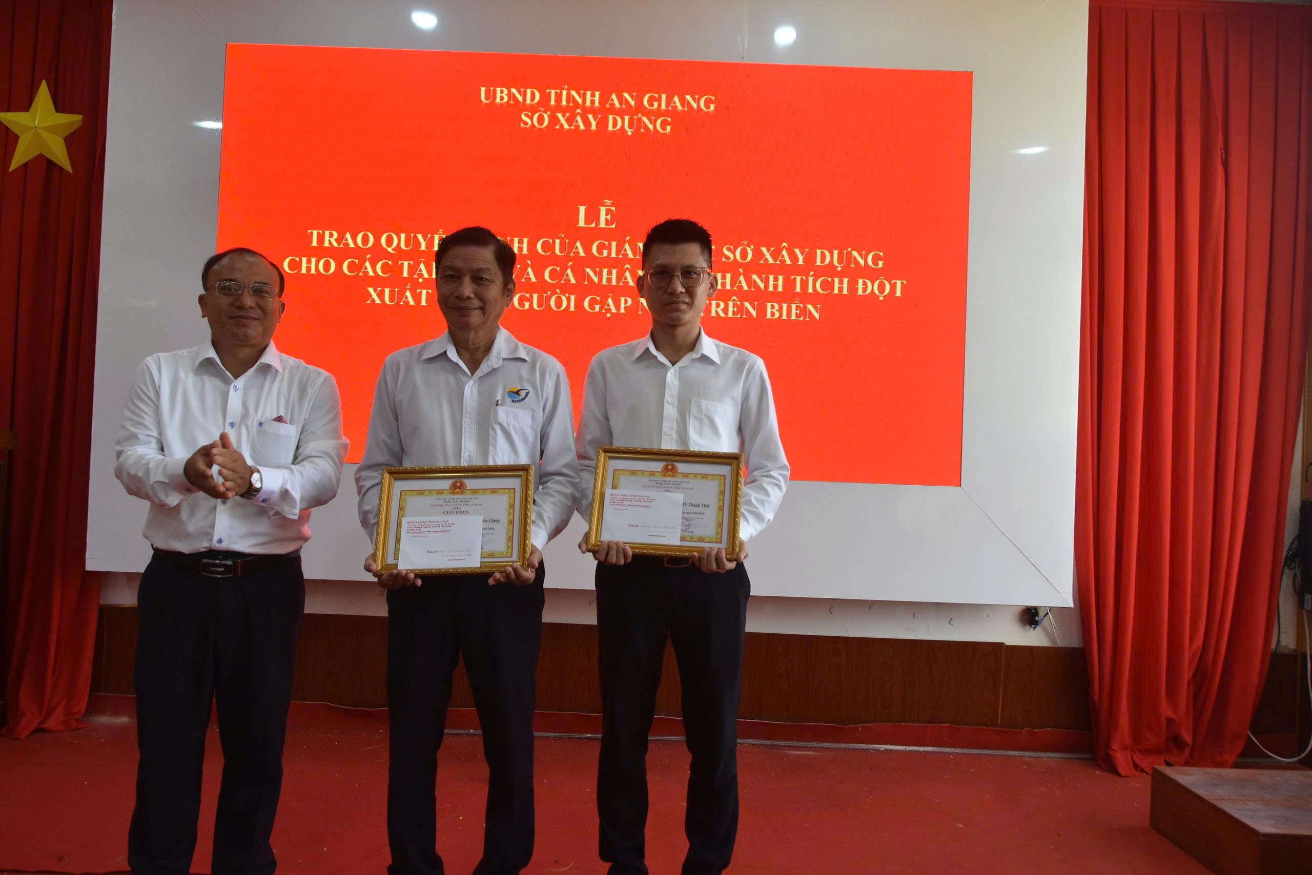 Sáng ngày 01/10/2025, Sở Xây dựng tỉnh An Giang tổ chức Lễ công bố và trao Quyết định khen thưởng đột xuất của Giám đốc Sở Xây dựng tỉnh An Giang cho 02 tập thể và 02 cá nhân đã có thành tích cứu người gặp nạn trên biển.