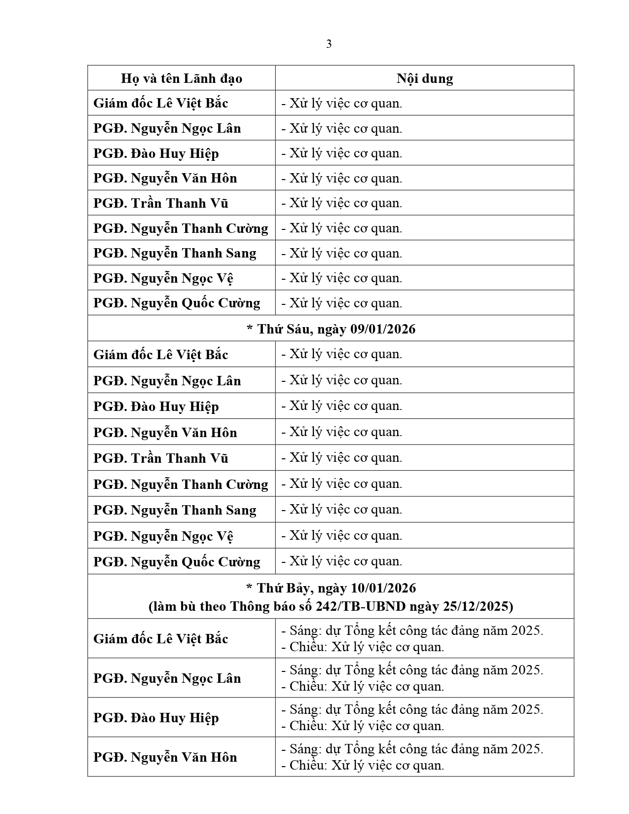 Thông báo số 10/TB-SXD ngày 05/01/2026 của Sở Xây dựng tỉnh An Giang lịch làm việc của Lãnh đạo Sở Xây dựng tỉnh An Giang (từ ngày 05/01/2026 đến ngày 11/01/2026).