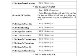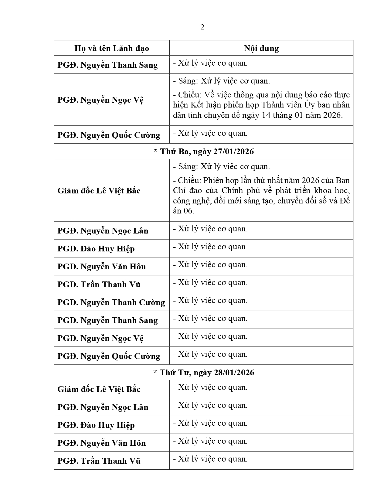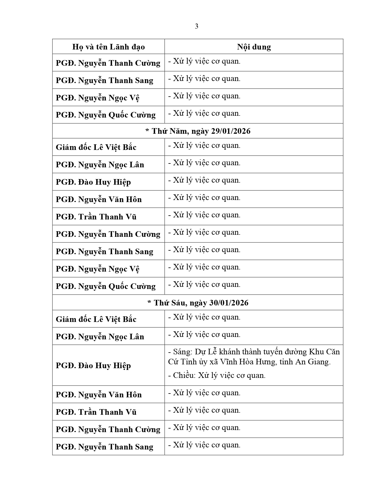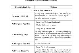 Thông báo số 738/TB-SXD ngày 26/01/2026 của Sở Xây dựng tỉnh An Giang lịch làm việc của Lãnh đạo Sở Xây dựng tỉnh An Giang (từ ngày 26/01/2026 đến ngày 01/02/2026).