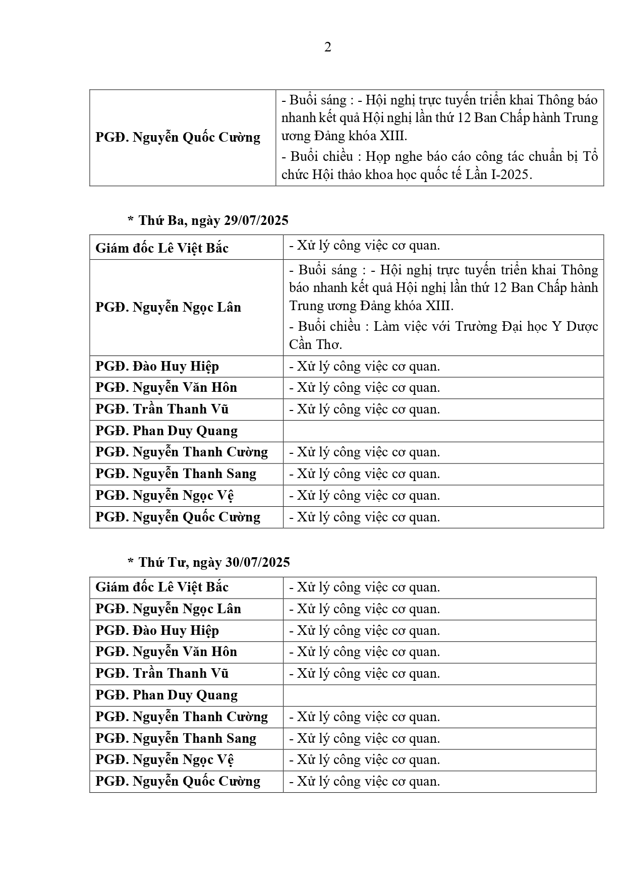 Lịch làm việc của Lãnh đạo Sở Xây dựng tỉnh An Giang (từ ngày 28/7/2025 đến ngày 03/8/2025)