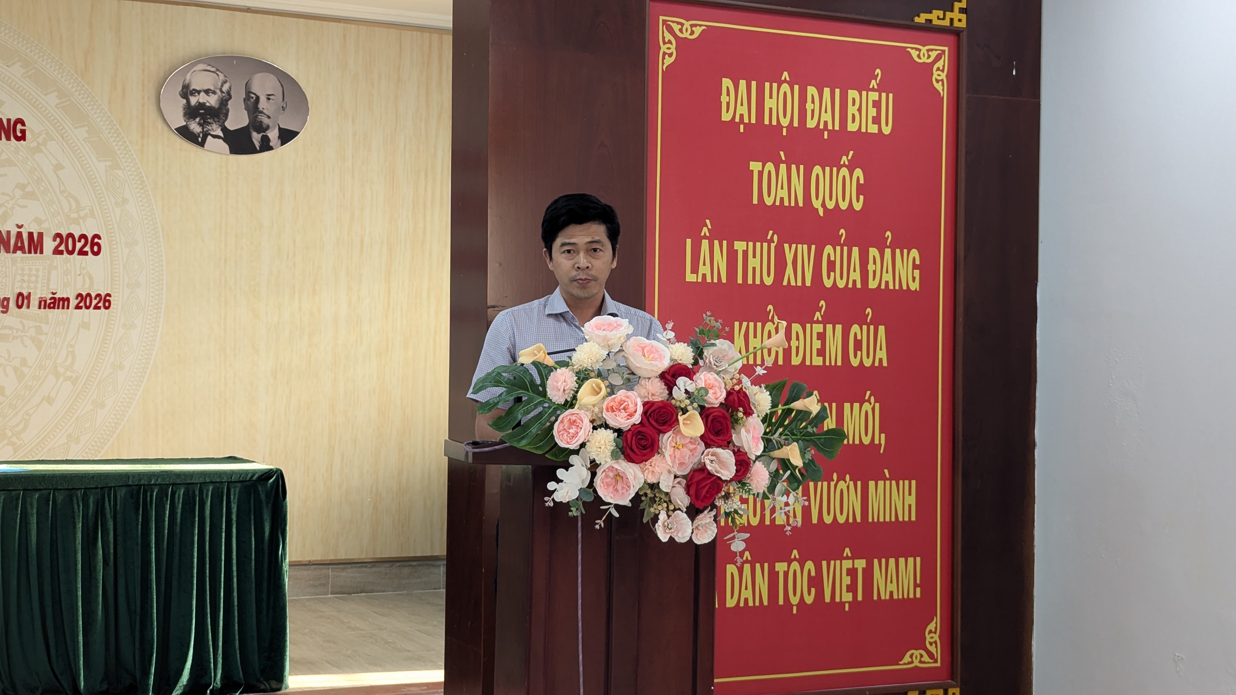 Đồng chí Trần Thanh Vũ, Phó Giám đốc Sở Báo cáo kiểm điểm kết quả thực hiện nhiệm vụ năm 2025 và phương hướng, nhiệm vụ năm 2026