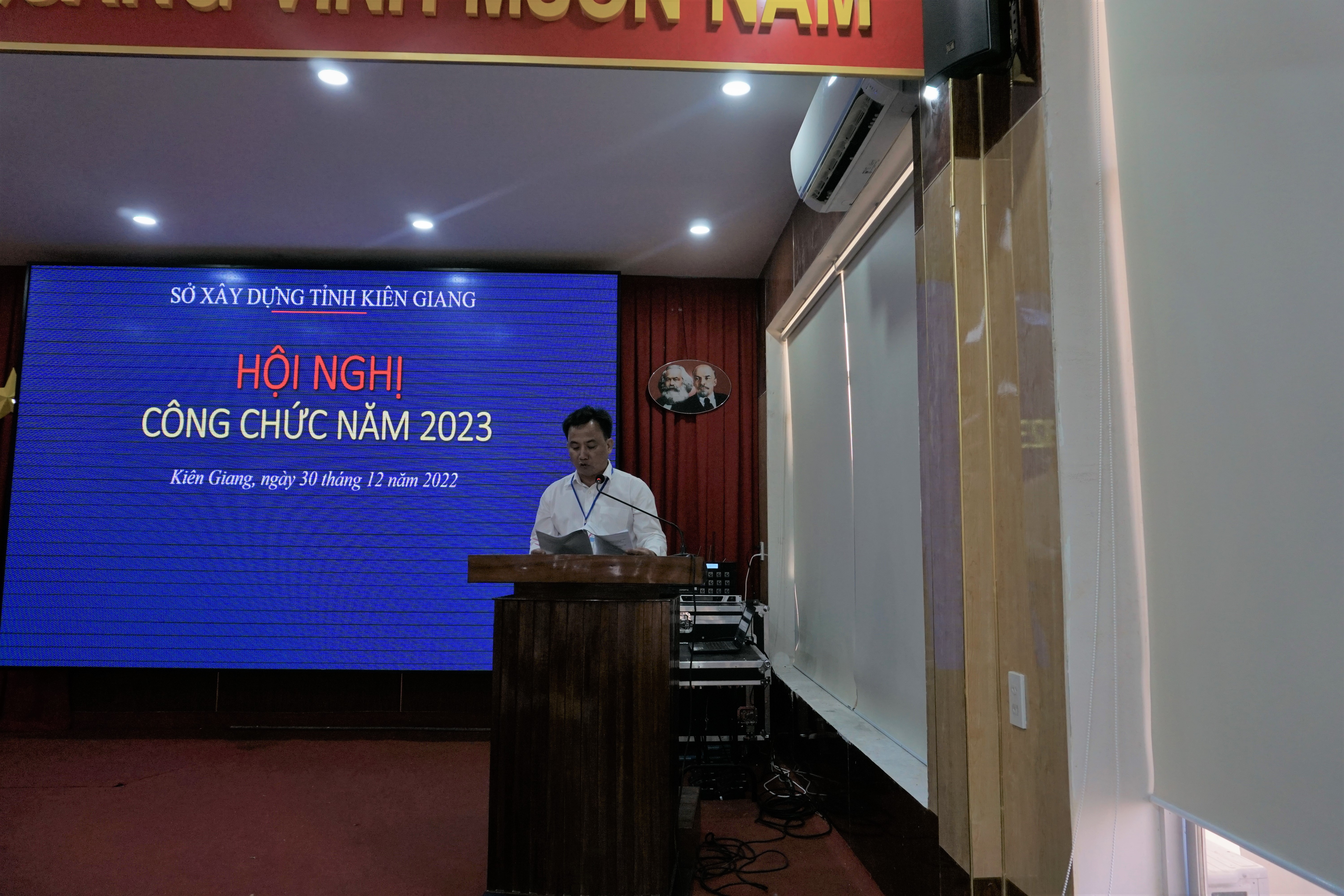 Nhằm thực hiện tốt dân chủ trong cơ quan Sở Xây dựng, góp phần xây dựng đội ngũ công chức có đủ phẩm chất chính trị, phẩm chất đạo đức, lối sống, năng lực và trình độ chuyên môn, nghiệp vụ đáp ứng yêu cầu thực thi nhiệm vụ, công vụ, làm việc có năng suất, chất lượng, hiệu quả; tăng cường đấu tranh, phòng ngừa và ngăn chặn các hành vi tham nhũng, lãng phí, quan liêu, phiền hà, sách nhiễu Nhân dân tại Sở Xây dựng. Ngày 30/12/2022, Ban Giám đốc Sở Xây dựng phối hợp với Ban Chấp hành Công đoàn cơ sở Sở Xây dựng tổ chức Hội nghị Công chức năm 2023, qua đó để báo cáo lại những kết quả đạt được của năm qua, đề ra phương hướng nhiệm vụ công tác của năm tiếp theo.