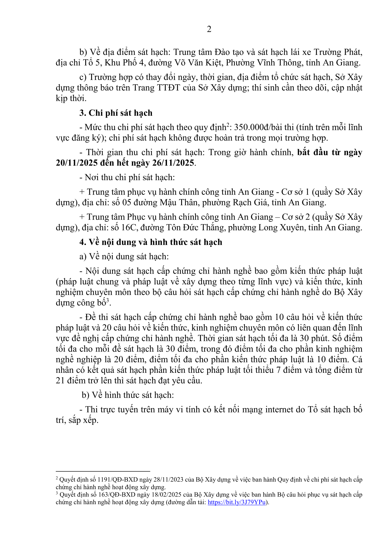 Ngày 21/11/2025, Sở Xây dựng tỉnh An Giang đã có thông báo số 4696/TB-SXD thông báo kế hoạch tổ chức sát hạch cấp Chứng chỉ hành nghề hoạt động xây dựng, Đợt 03 năm 2025